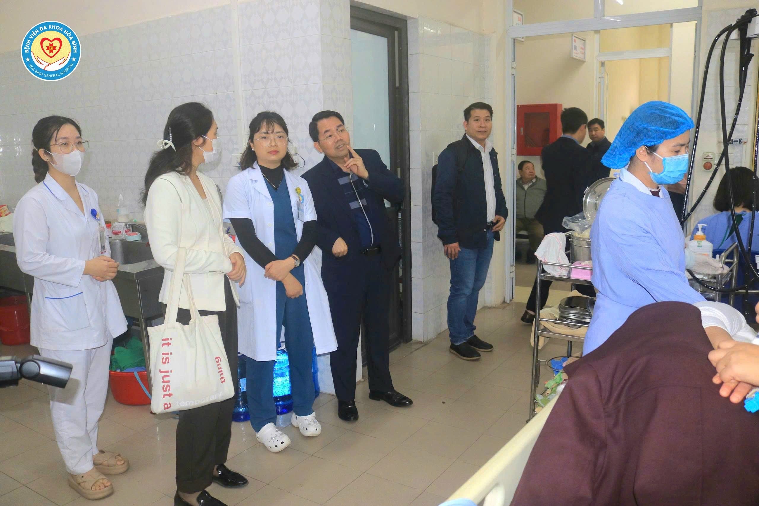 Để hỗ trợ và chuyển giao một cách tốt nhất các kỹ thuật, sau nghe báo cáo, Đoàn công tác Bệnh viện E đã tiến hành tham quan thực tế tại các khoa lâm sàng. Qua đó, đưa ra những đánh giá, nhận định và định hướng chuyên môn cho các khoa. Đồng thời, hướng dẫn, chuyển giao kỹ thuật qua một số ca lâm sàng điển hình đã được các khoa chuẩn bị sẵn.