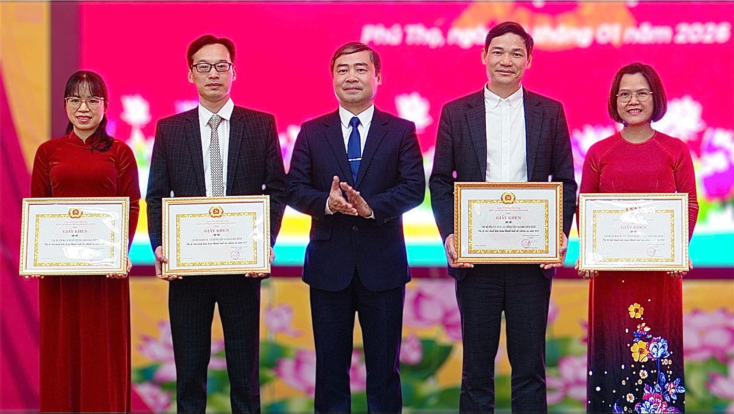 Nhân dịp này, Đảng bộ phường Hòa Bình đã tặng Giấy khen cho 7 cá nhân vì có thành tích xuất sắc 5 năm liền. Đảng ủy Bệnh viện Đa khoa Hòa Bình tặng Giấy khen cho 4 chi bộ hoàn thành xuất sắc nhiệm vụ; biểu dương 8 chi bộ tiêu biểu năm 2025 và khen thưởng 58 đảng viên được xếp loại hoàn thành xuất sắc nhiệm vụ năm 2025.