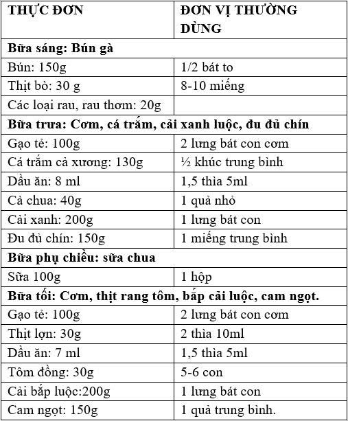 Thịt nạc + cá + tôm: 240 gam; Sữa công thức: 200ml